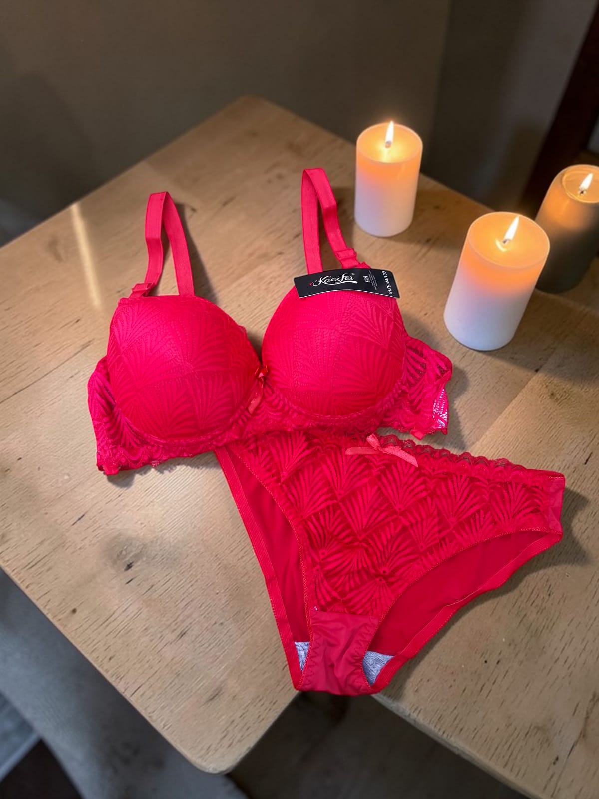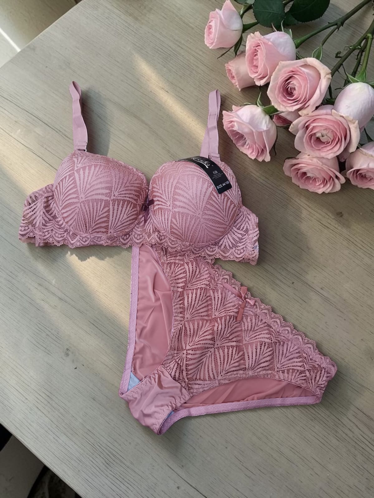 طقم ستاتي عرايسي بتصميم دانتيل فاخر يمنحك لمسة أنوثة ورقي لا تقاوم. يتكوّن من ستيانة بوش تعطي رفعًا مثاليًا وشكل ممتلئ جذاب، مع سلب مطابق يكمل الإطلالة بأناقة ساحرة.
